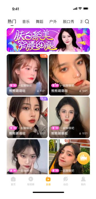 影视系统内接入直播系统,完整的直播功能,支持pk连麦、直播带货等功能。